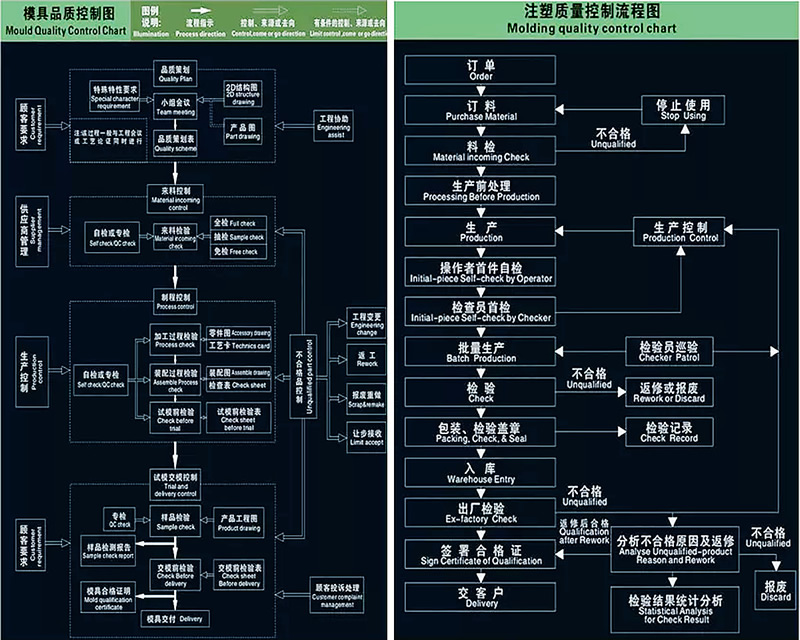 目前,天成達(dá)已與眾多知名供應(yīng)商建立長(zhǎng)期合作關(guān)系,包括LKM、YUDO、HUSKY、MISUMI、HASCO、DME,以確保產(chǎn)品加工前的質(zhì)量。天成達(dá)精熟HASCO、DME等模具設(shè)計(jì)標(biāo)準(zhǔn),每一道加工工序和工藝流程均根據(jù)客戶要求制作“標(biāo)準(zhǔn)作業(yè)指導(dǎo)書”、“產(chǎn)品質(zhì)量檢驗(yàn)標(biāo)準(zhǔn)書”,整個(gè)生產(chǎn)加工過(guò)程均采用IQC、IPQC、FQC、OQC等多個(gè)科學(xué)的、嚴(yán)格的檢驗(yàn)程序和質(zhì)量控制點(diǎn),并借助三坐標(biāo)檢測(cè)儀、影像測(cè)量?jī)x、投影儀等先進(jìn)檢測(cè)儀器,在科學(xué)的工藝流程指導(dǎo)下,天成達(dá)興為客戶全方位提供卓越的品質(zhì)保證。